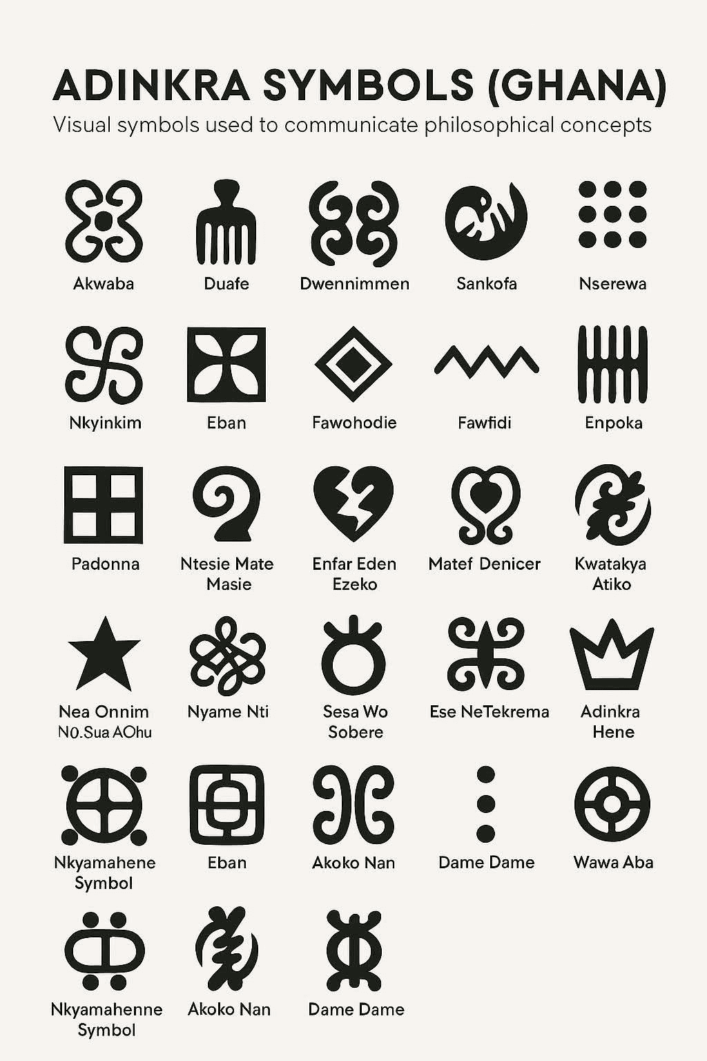 The system draws from Ghanaian visual culture, including Adinkra symbols and traditional patterns.